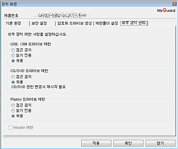 PC에 접근 가능한 USB, CD를 제어하여 사용을 금지시키거나 읽기전용으로 사용하게 하여 자료의 유출을 차단합니다.