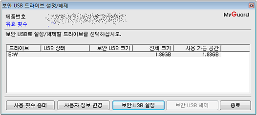 사용자가 USB의 공간을 이용하여 설정한 용량 만큼 보안USB를 생성합니다. 생성한 보안영역은 사용자 인증없이는 접근이 불가능합니다.