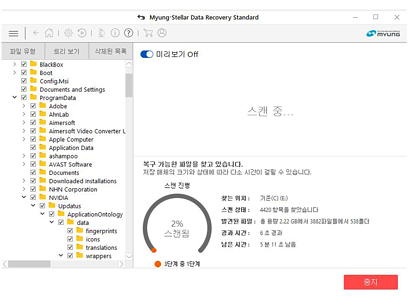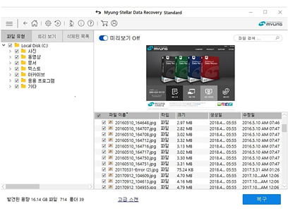 [스캔 작업 후 복구 결과를 미리보기를 통해 확인할 수 있습니다.]