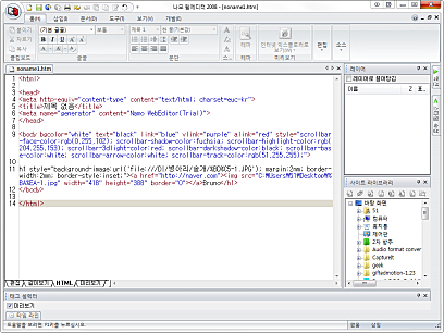 나모 웹에디터는 HTML을 기초로 한 위지윅(WYSIWYG) 방식의 멀티미디어 웹 제작 도구로서 사용자 편의성을 극대화하기 위해 Microsoft Office와 비슷한 리본 UI를 채택하였으며, 리본 메뉴에는 작업별 도구가 그룹화되어 있어 자주 사용하는 명령을 쉽게 적용할 수 있고 사용자가 원하는 웹 콘텐츠를 쉽고 빠르게 제작할 수 있습니다.