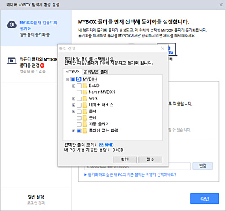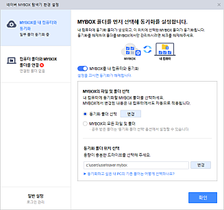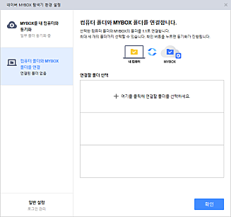 * 동기화하고 싶은 MYBOX 폴더를 개수 제한없이 선택할 수 있습니다.
