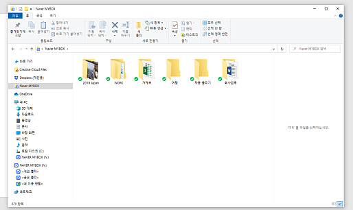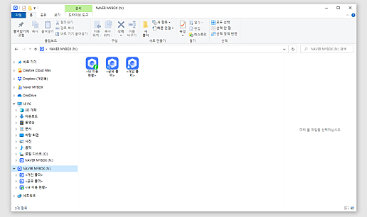 * MYBOX의 파일 및 폴더를 선택해서 내 컴퓨터의 동기화 폴더(Naver MYBOX)에 동기화합니다.
