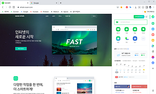 빠르고 스마트한 네이버 웨일을 만나보세요. 차원이 다른 옴니태스킹으로 여러분의 인터넷이 새로워집니다.
