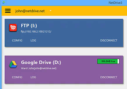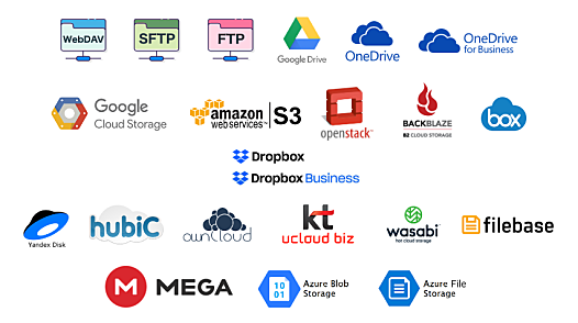 * Google Drive, OneDrive, DropBox 등 다양한 클라우드 서비스 뿐만 아니라 WebDAV, FTP, SFTP 등 원격 파일 스토리지를 PC의 로컬 드라이브처럼 사용할 수 있습니다.