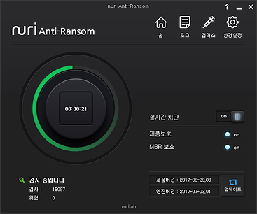 * 랜섬웨어 악성코드 공격으로 부터 nuri Anti-Ransom의 구성 파일 삭제 및 프로세스 종료가 되지 않도록 보호하는 기능.