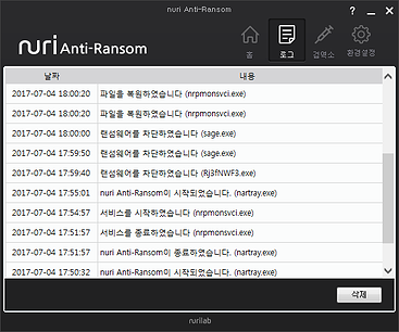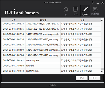* nuri Anti-Ransom으로 인해 치료,삭제된 파일을 검역소에 보관하여 복원 가능.