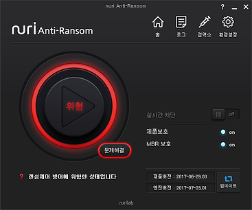 패턴기반에 의존하는 일반 백신 프로그램의 한계를 해결하여 랜섬웨어의 위협으로부터 사용자의 시스템을 보호할 수 있는 효과적인 프로그램입니다.