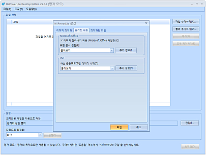 이 목록에 폴더 또는 표준ZIP 아카이브를 추가하면, NXpowerLite는 PDF, PowerPoint, 워드, Excel, JPEG 이미지파일을 압축합니다.