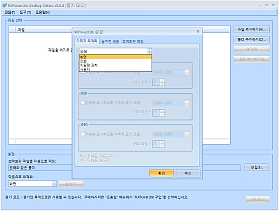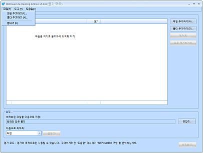 최적화 할 파일의 목록을 작성하는 NXpowerLite 창에 드래그해 한 폴더에 여러 파일을 최적화 할 수 있습니다.