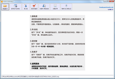 PDF 및 이미지(JPG,GIF,TIFF 등)에 포함된 문자를 인식하는 기능을 가지고 있으며 인식률이 90% 이상되는 OCR서비스 프로그램입니다.