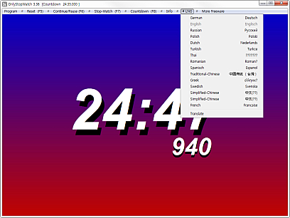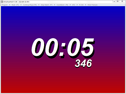 상세정보 스톱워치 기능 시작, 중지를 핫키로 설정하여 천분의 1초인 밀리초까지 체크가 가능한 세밀한 스톱워치 기능을 제공합니다. 풀화면을 지원하여 큰 화면으로 카운트 다운이 가능합니다. F5키로 스톱워치의 시작/중지가 가능합니다. F6키를 이용해 일시정지를 할 수 있습니다.