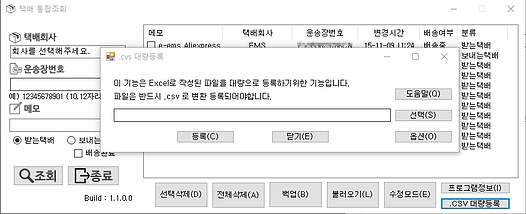 택배 사별 운송장과 메모를 등록하여 수시로 편리하게 조회할 수 있도록 만들어진 프로그램입니다.