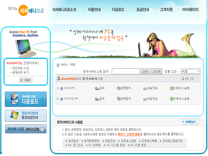 * 원격지에 있는 PC의 화면을 실시간으로 공유하며, 바탕화면 전체를 공유 합니다.