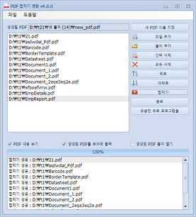 상세정보 PDF 뷰어 * PDF 뷰어를 통해 내용을 직접 보면서 작업하는 편리함을 제공합니다. 빠른 작업 속도 * 전용 합치기 엔진으로 정확하고 빠르게 작업을 수행합니다. 대량 합치기 * 수많은 PDF를 한꺼번에 안정적으로 합칠 수 있습니다.