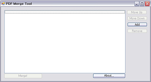 상세정보 화면 내의 Add 버튼을 클릭하여 PDF 파일을 불러온 후에 Move Down, Move up 버튼을 이용하여 순서를 지정하고 왼쪽 아래의 Merge 버튼을 클릭하면 하나의 PDF 파일로 합쳐지게 됩니다.