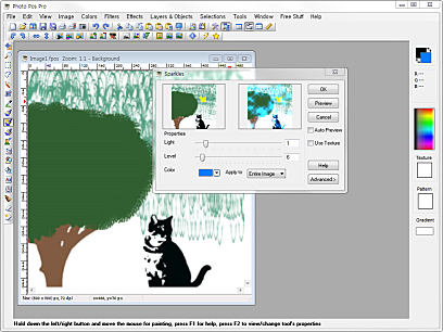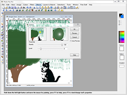 에디팅 툴과 기능, 텍스트 툴, 툴 셀렉션, 레이어와 마스크, 그라디언트, 패턴, 텍스쳐, 스크립트 툴, 배치 명령어 등을 지원하는 강력하고 사용하기 편한 그래픽 툴입니다.