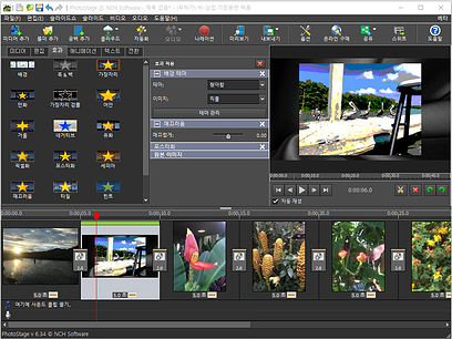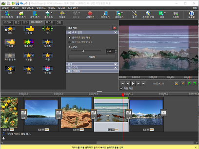 * 다양한 영상 전환을 선택할 수 있고, 이동하기(Panning) 및 확대/축소(zoom) 효과를 이용해 더욱 다양한 이미지를 연출 할 수 있습니다.