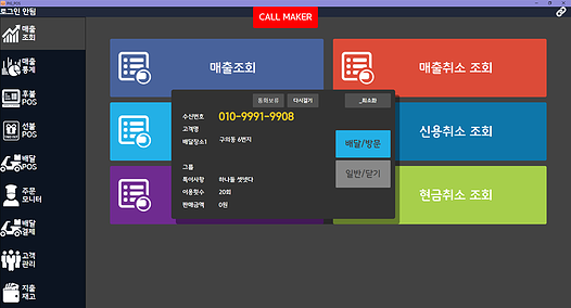* 배달 포스 : CID기기 연동, 고객 배달주문을 편리하게 관리하는 배달POS