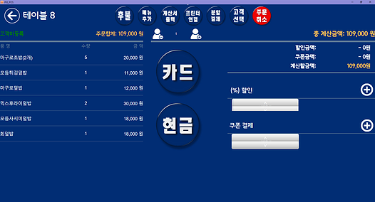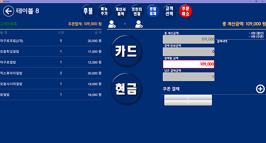 * 할인, 상품권, 추가주문, 분할결제 등 세부적인 옵션을 복잡한 과정 없이 간단하게 조정하여 사용하실 수 있습니다.
