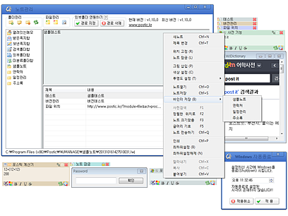 계산기 기능, 사전기능, 알람기능, 자동리사이징 기능, 사전순 정렬, 윈도우즈 자동종료 등 다양한 작업을 수행할 수 있으며 Native Language로 작성되는 프로그램 입니다.