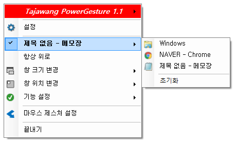* 웹 브라우저뿐만 아니라 모든 프로그램에서 마우스 제스처 기능을 사용할 수 있습니다.