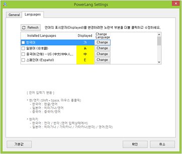 * Shift+Space 키를 누르면 한/영, 중/영, 일/영과 같이 전환되며, 한 칸을 띄우면서 전환하는 편의기능도 있습니다.