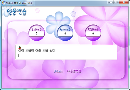한글 단문과 영문 단문 연습을 할 수 있습니다.