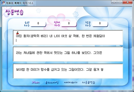 한글 장문과 영문 장문 연습을 할 수 있습니다.