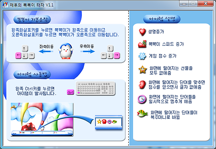 귀여운 뽁뽁이 캐릭터가 나오는 타자게임을 할 수 있습니다.