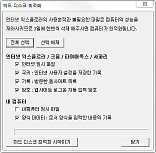 상세정보 모니터링 기능 프로세스 핑 설정보기가 가능합니다. 최적화 기능 하드 디스크 최적화, Active X최적화, 프로세스 핑 최적화 기능이 있습니다. 초기화 기능 시작프로그램 관리 및 초기화, Explorer 초기화 기능이 있습니다. 기타 기능 업데이트 기능이 있으며, 프로세스 시스템 복원 기능이 있습니다.