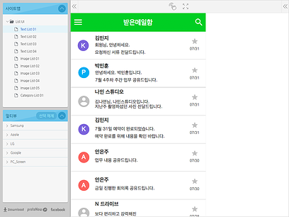 * 링크 연결, 드로어 메뉴(Drawer Menu), 알림 메시지(Toast Notification), 스와이프 뷰 기능 등 마우스 클릭 몇 번으로 인터랙션 기능을 쉽게 적용할 수 있습니다.