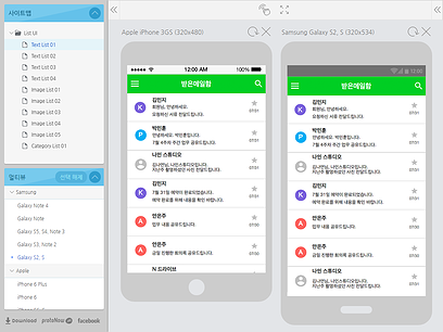 * 프로토나우 프로그램에서 해상도 별 프로토타입을 만들 수 있고, 자동으로 디바이스 화면크기에 맞게 보입니다.