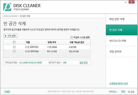 개인정보·기밀정보 등 주요정보 삭제 시 복구가 가능한 일반적인 삭제방법을 대체하여 복구가 불가능하도록 데이터를 완전 삭제하는 기능을 수행하는 프로그램입니다.