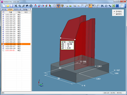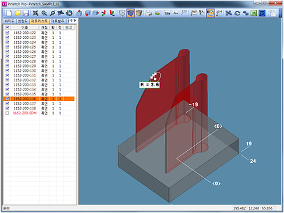* 3D 모델의 기본 위지정보는 화면에 바로 출력되고, 특정 형상의 위치좌표나 거리, 반경, 각도를 측정할 수 있습니다.