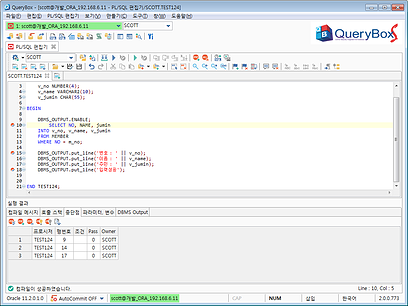 * 프로시저, 함수, 패키지등의 편리한 작성 및 컴파일, 테스트 실행 기능을 지원합니다.