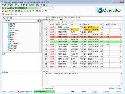 * 멀티 쿼리 실행, 바인드 변수 처리, 키워드 색상 표시, 문장 자동 완성, 쿼리 실행이력 제공, 컬럼 속성 보기, SQL 서식화, 개발언어로 변경 및 SQL 문장 추출 기능등을 지원합니다.