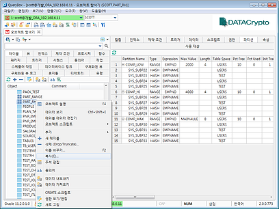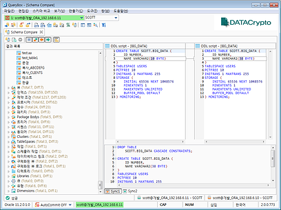 * 오브젝트(Table, Index, Trigger, Constraint, View, Synonym, Sequence, Procedure, Function, User, 등등) 목록 및 관련 속성을 쉽게 확인할 수 있으며, 기타 도구들과의 연동으로 편리한 기능을 제공합니다.