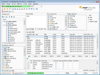 * 데이터베이스내에 존재하는 오브젝트에 대한 검색 기능을 제공하며, 오브젝트 이름, 소스 코드, 컬럼 이름 그리고 오브젝트 상태에 따라 검색할 수 있습니다.
