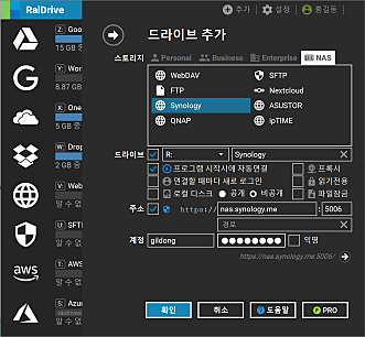 * 클라우드 스토리지를 네트워크 드라이브로 연결하여 바로 사용할 수 있습니다.