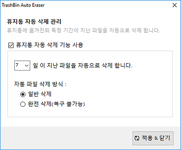 * 휴지통을 수동으로 삭제하지 않고 자동으로 원하는 날짜의 파일만 삭제 할수 있습니다.