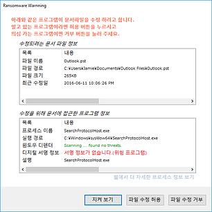 * 보호파일을 수정하려는 프로세스및 서비스를 탐지하고 알려 줍니다.