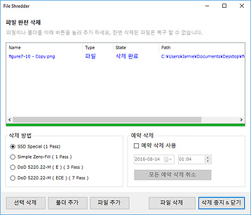 * 파일을 복구 할수 없도록 삭제하는 기능 입니다.
