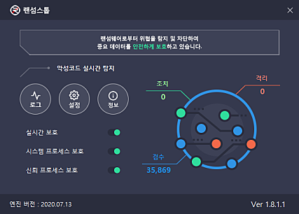 실시간 행위기반으로 랜섬웨어(Ransomware)에 의한 파일 암호화 방어 및 자동 백업, 취약점 보호 기능을 제공하는 안티랜섬웨어 프로그램입니다.