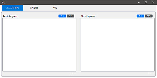 * 실행을 허용 또는 차단할 프로그램을 별도 설정할수 있습니다.