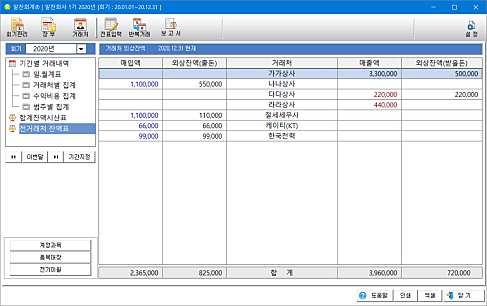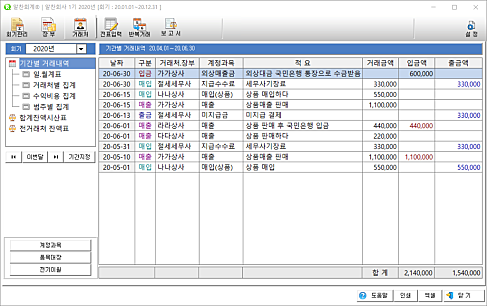 * 거래처별 매입매출, 입금액/출금액 집계와 상세 원장조회 지원합니다.