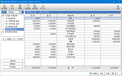 * 일월계표, 합계잔액시산표에서 계정별 합계, 계정별원장 조회 지원합니다.