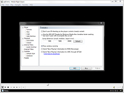 Media Player Classic 제공으로 WinDVD와 같이 외부 디코더를 이용하여 DVD등 다양한 멀티미디어 파일을 재생할 수도 있고 다양한 코덱 및 재생 환경 또한 제공합니다.