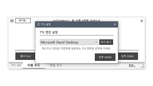 * sayThatWord는 Windows TTS 엔진을 이용하여 별도의 인터넷 연결 필요 없이 테스트, 연습시 발음을 청취할 수 있습니다.