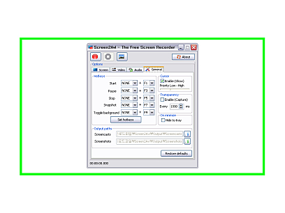 상세정보 동영상 캡처 및 녹화가 가능합니다. 컴퓨터에서 나오는 모든 음성 녹음을 할 수 있습니다. 풀화면 또는 영역 지정을 할 수 있는 2가지 옵션이 있습니다. 핫키를 이용해 녹화 및 중지, 일시중지를 할 수 있는 기능이 있습니다.