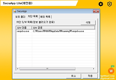* 기본적으로 행위감시에 탐지된 소프트웨어는 선 차단하며 사용자가 해제할 수 있습니다.